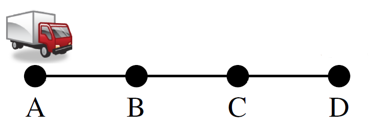 \(A\): \(\mathit{drive}(X,Y)\) where \(X,Y\) have a road. \[ c(\mathit{drive}(X,Y)) = \left \{ \begin{array}[]{ll} 1 & \{X,Y\} = \{\mathit{Sy}, \mathit{Br}\}\\ 1.5 & \{X,Y\} = \{\mathit{Sy}, \mathit{Ad}\}\\ 3.5 & \{X,Y\} = \{\mathit{Ad}, \mathit{Pe}\}\\ 4 & \{X,Y\} = \{\mathit{Ad}, \mathit{Da}\} \end{array} \right. \]