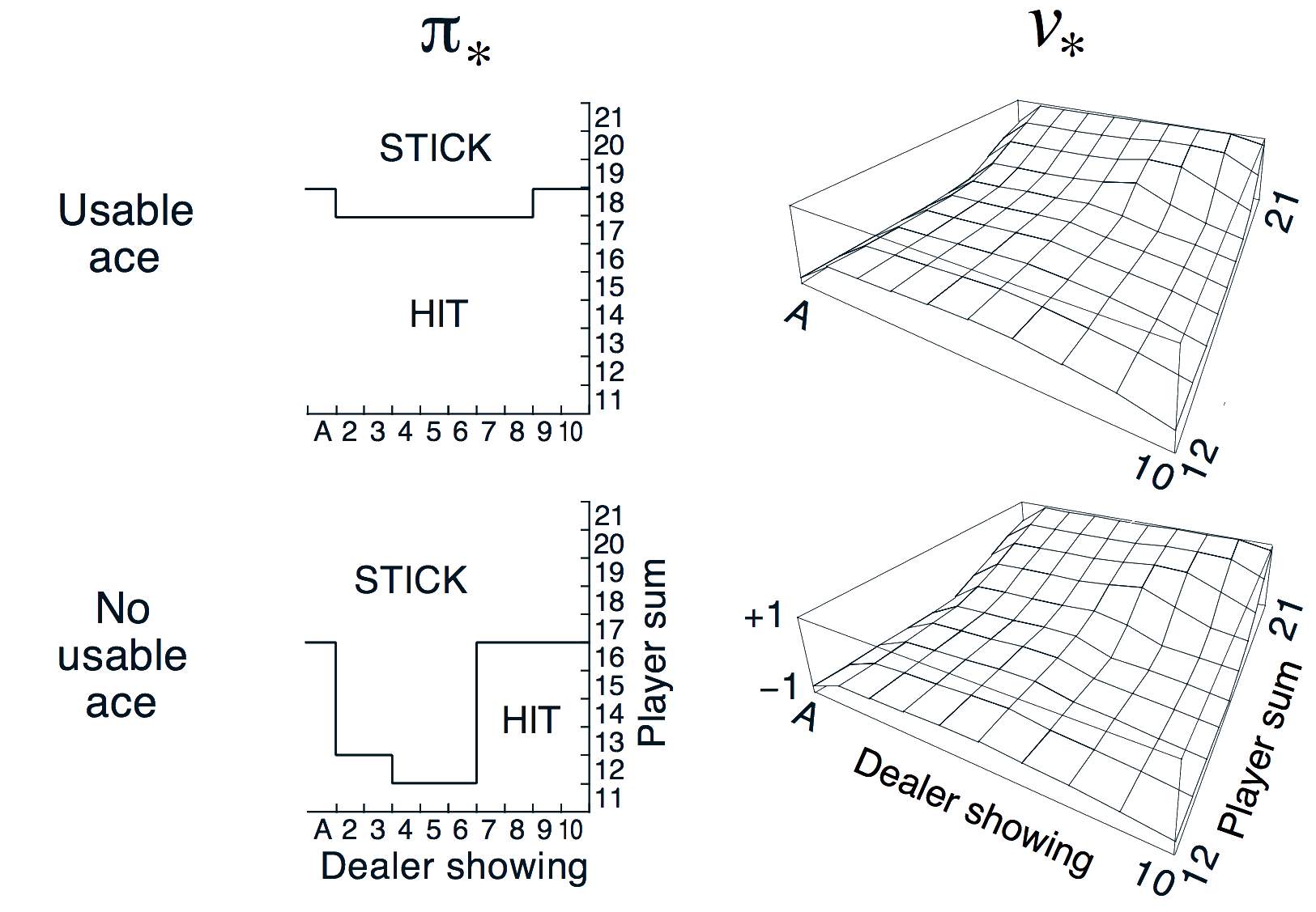 Policy: stand if sum of cards ≥ 20, otherwise hit